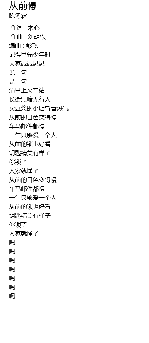 | [01:41.05] | cóng qián de rì sè biàn de màn |