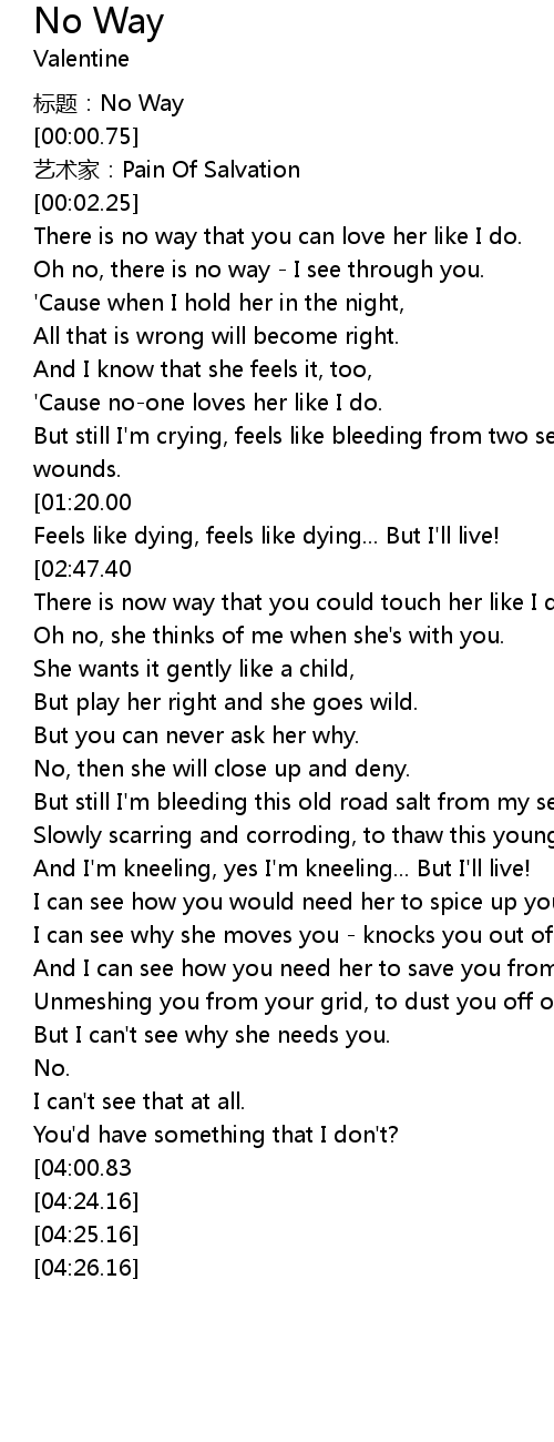 | [00:00.00] | biāo tí: No Way |