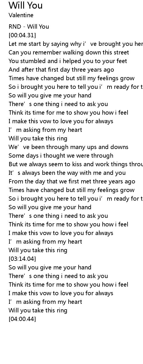 | [00:25.41] | You stumbled and i helped you to your feet |