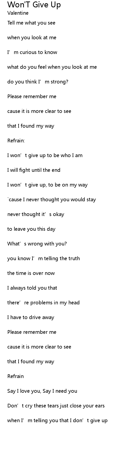 | I won’t give up, to be on my way | |