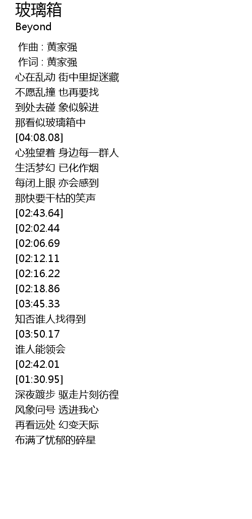 | [03:56.26][03:45.33][02:32.13][02:21.25][01:19.49] | 玻璃的箱 知否谁人找得到 |