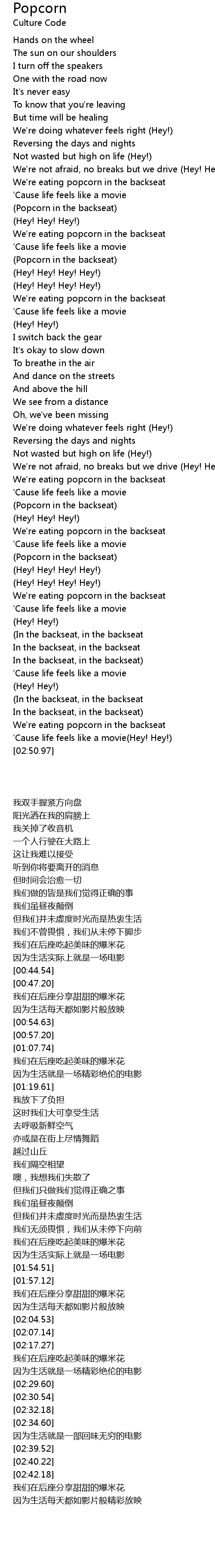 (Popcorn in the backseat) |