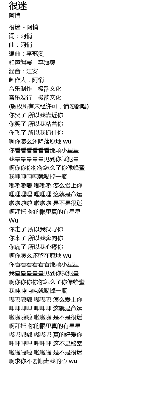 | [00:41.47] | a nǐ nǐ nǐ nǐ nǐ zěn me le nǐ xiàng fēng mì |