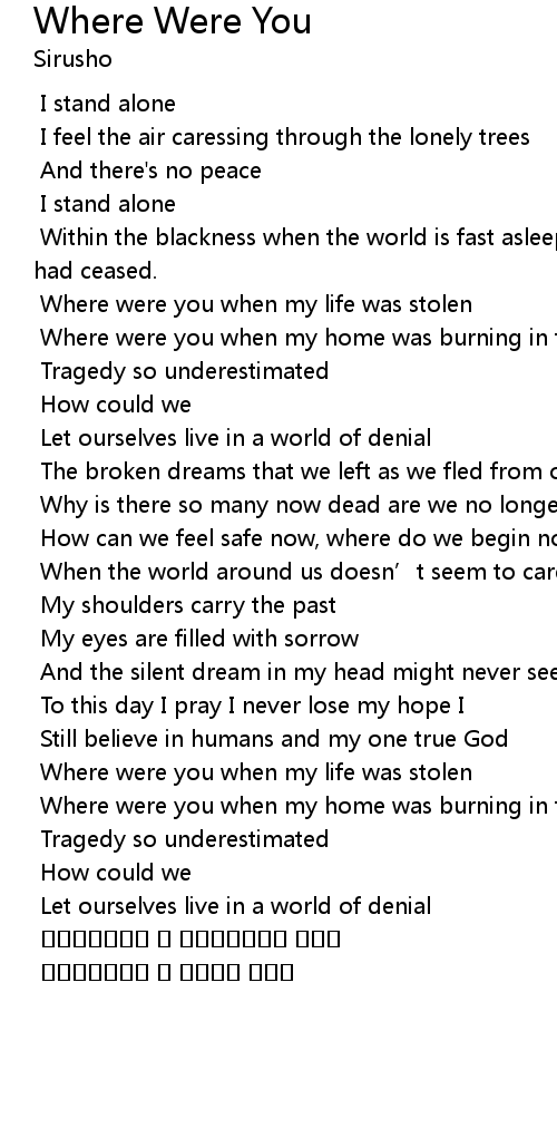 | [00:50.322] | Where were you when my home was burning in fire |