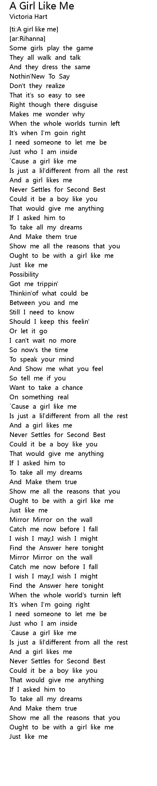`Cause a girl like me |