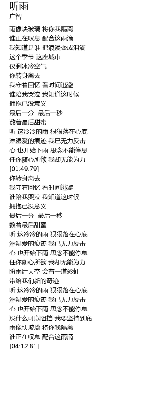 | [04:03.83] | 谁正在叹息 配合这雨滴 |