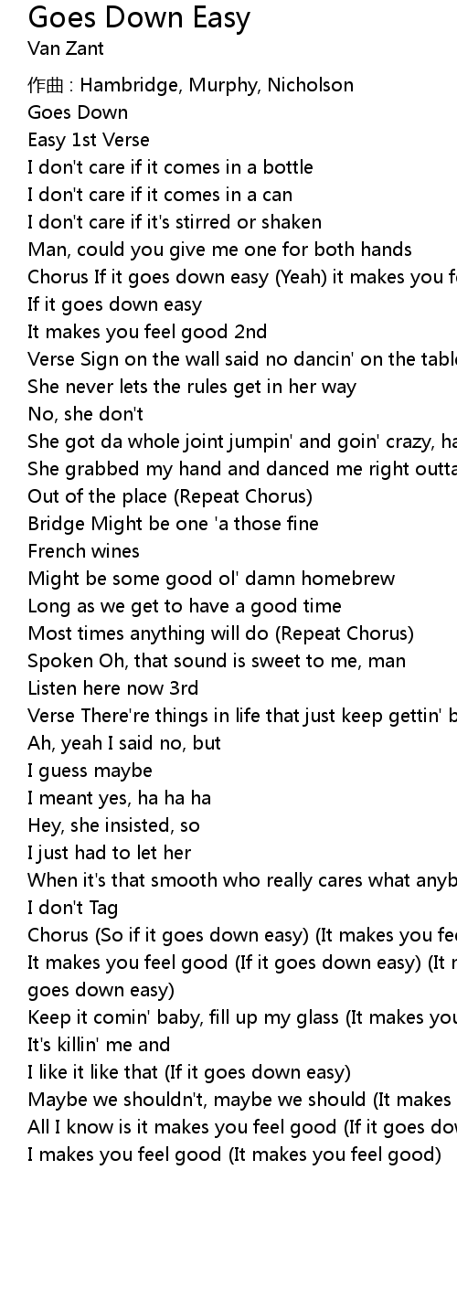 | Chorus (So if it goes down easy) (It makes you feel good) | |