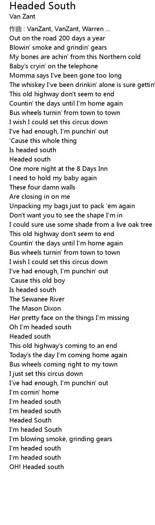 | Oh I' m headed south | |