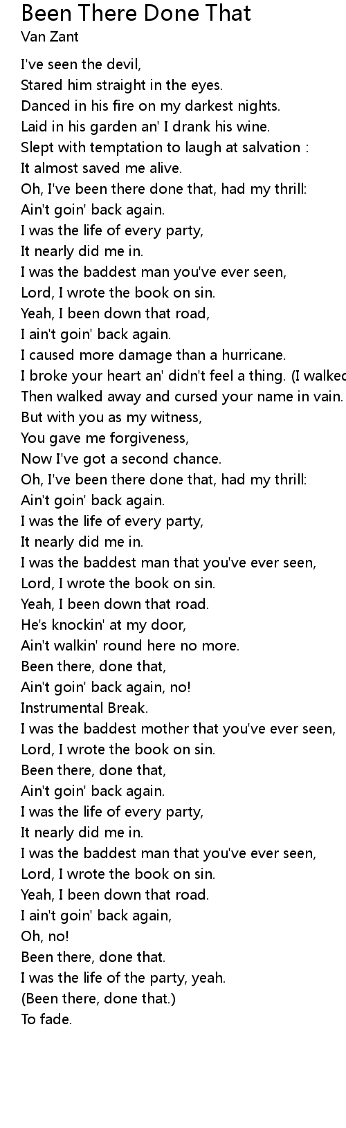 | Song | Been There Done That |