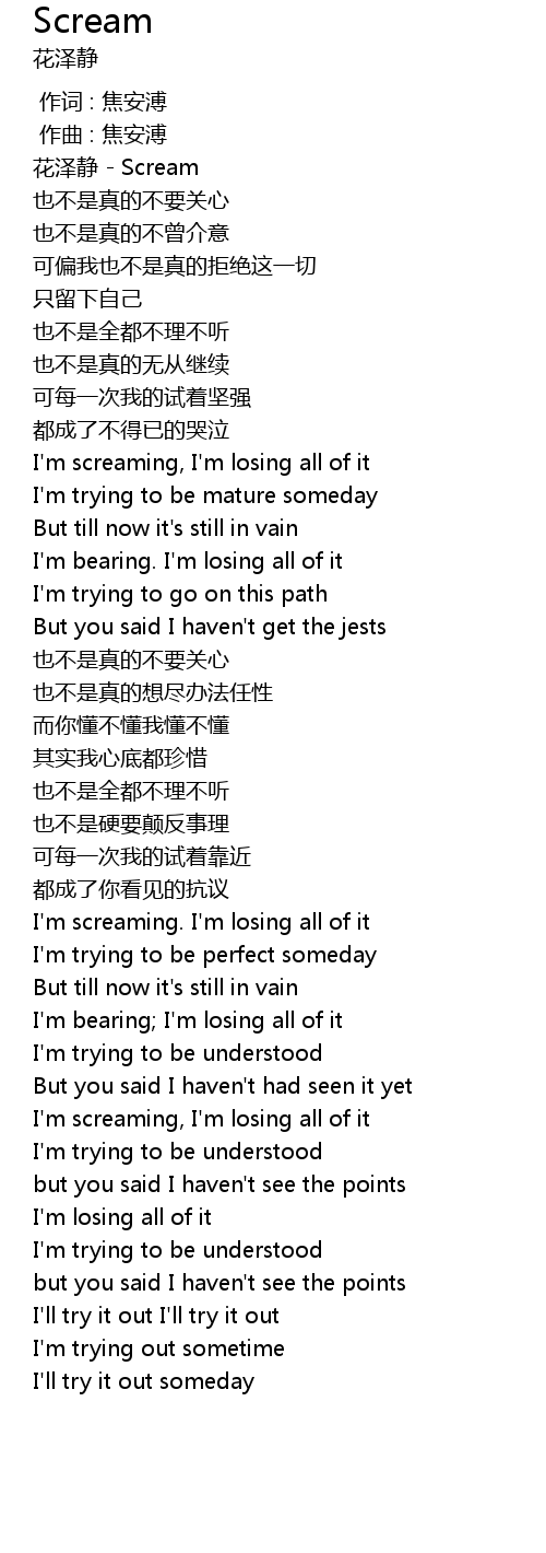 | [00:49.90] | I'm screaming, I'm losing all of it |