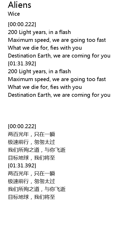 | [01:27.389] | Destination Earth, we are coming for you |