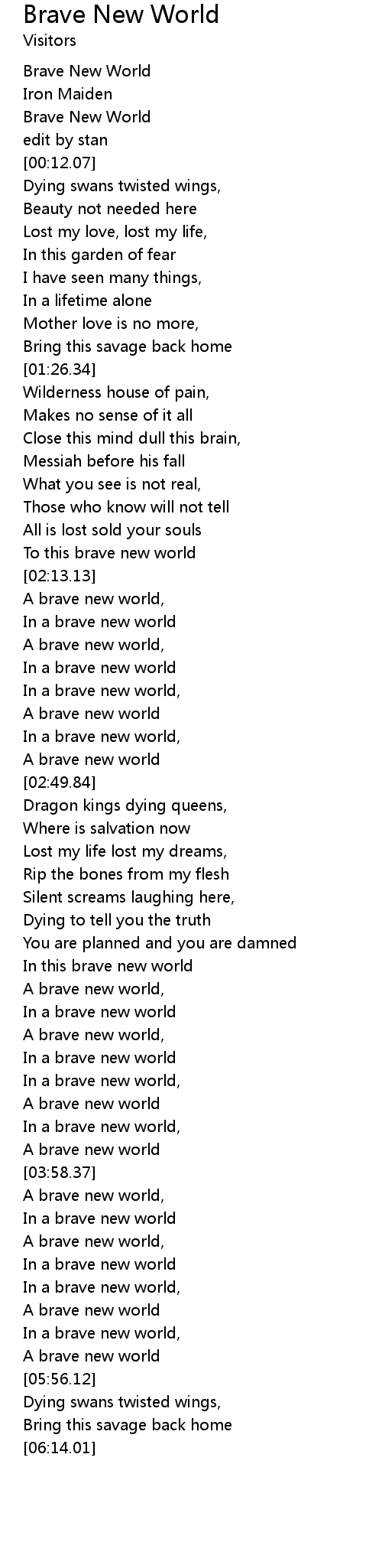 | [00:04.09] | Brave New World |