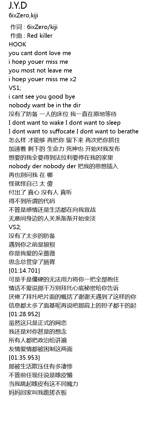 | [00:00.000] | 作词 : 6ixZero/kiji |