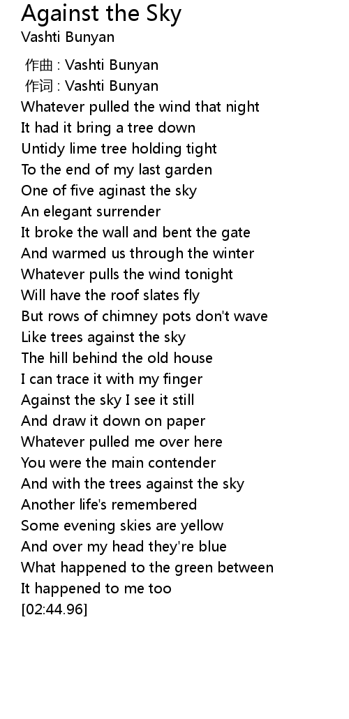 | [01:32.57] | Like trees against the sky |