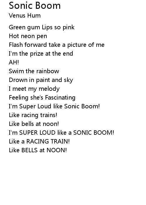 | Song | Sonic Boom |