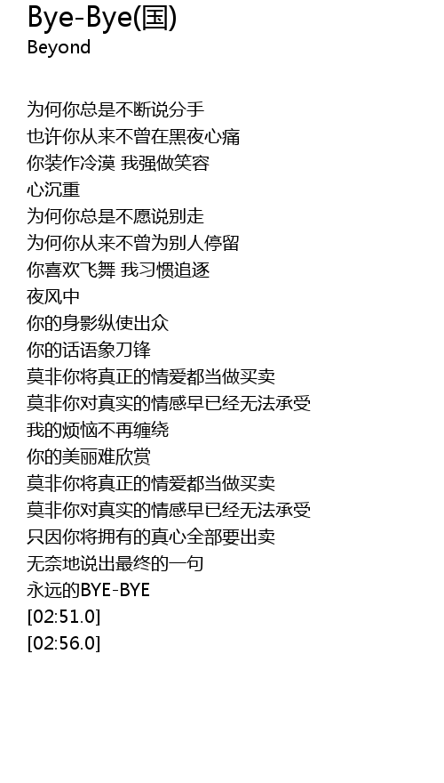 | [02:33.0] | yǒng yuǎn de BYEBYE |