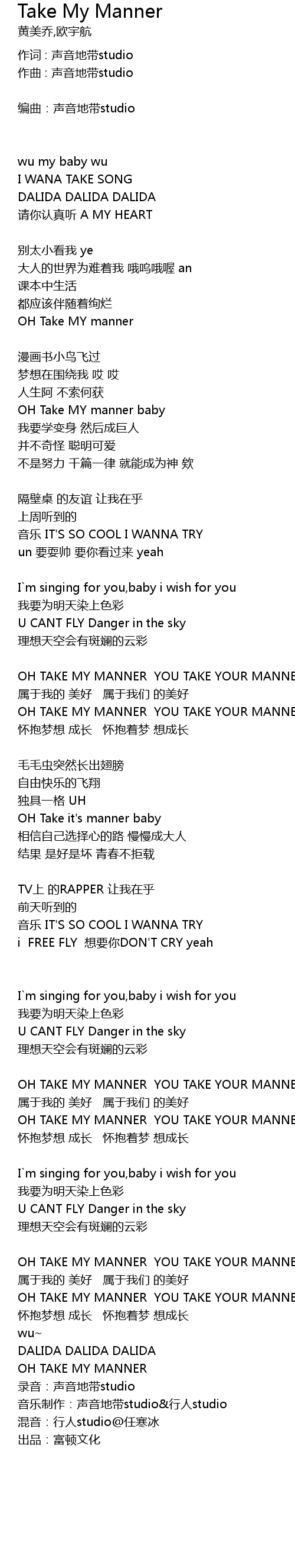 | OH TAKE MY MANNER YOU TAKE YOUR MANNER | |