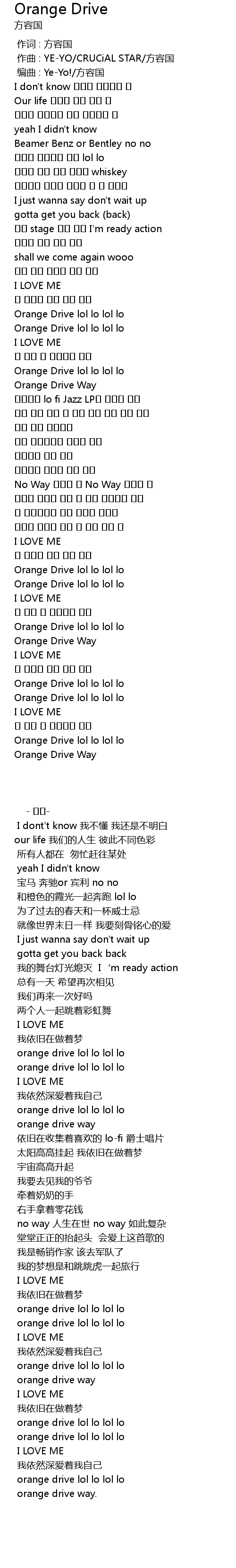 | [03:01.60] | Orange Drive lol lo lol lo |