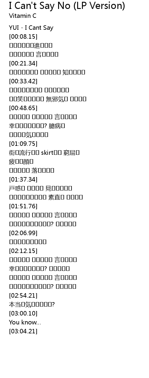 | [01:15.53] | 街流行 skirt 窮屈 |