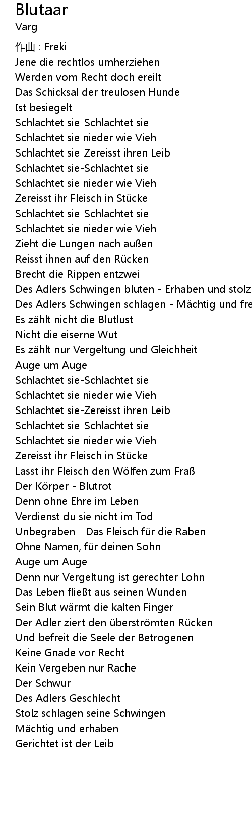 | Schlachtet sieZereisst ihren Leib | |