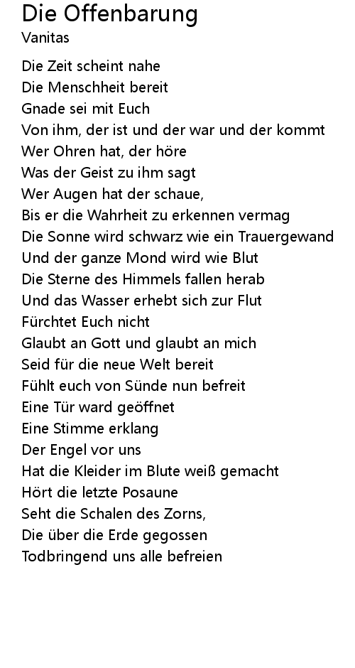 | Die Sonne wird schwarz wie ein Trauergewand | |