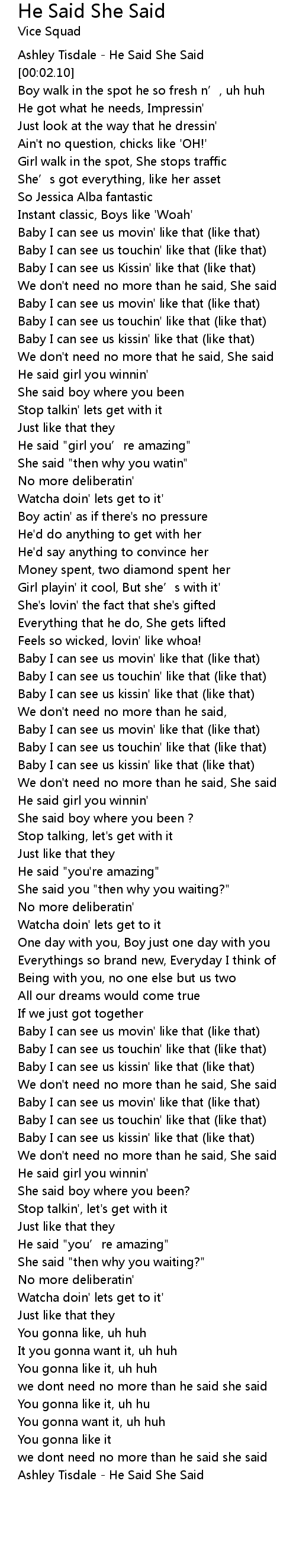 | [03:05.33] | Ashley Tisdale He Said She Said |