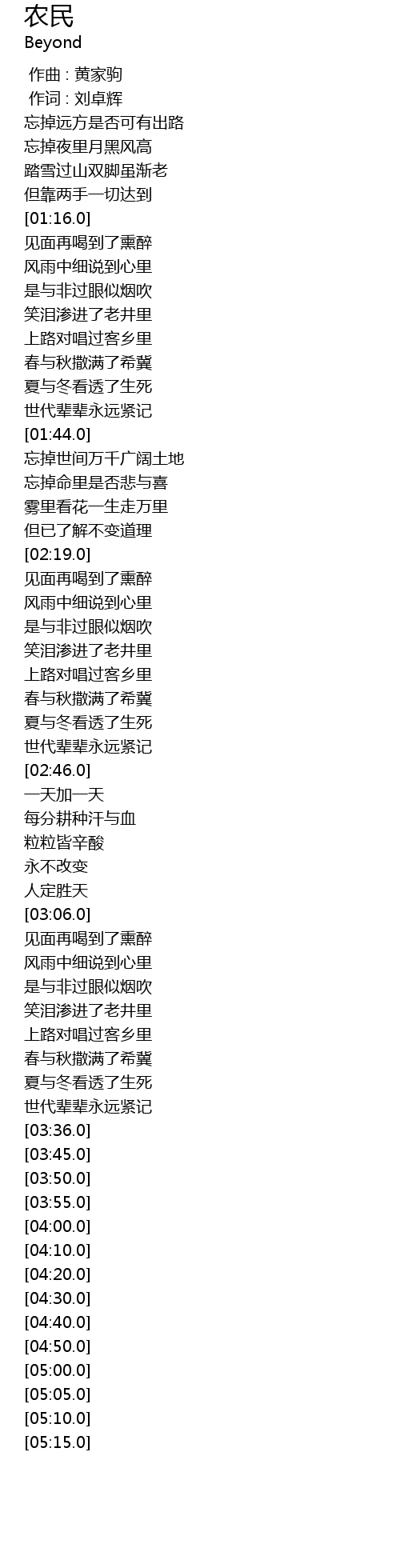 | [02:01.0] | 忘掉命里是否悲与喜 |