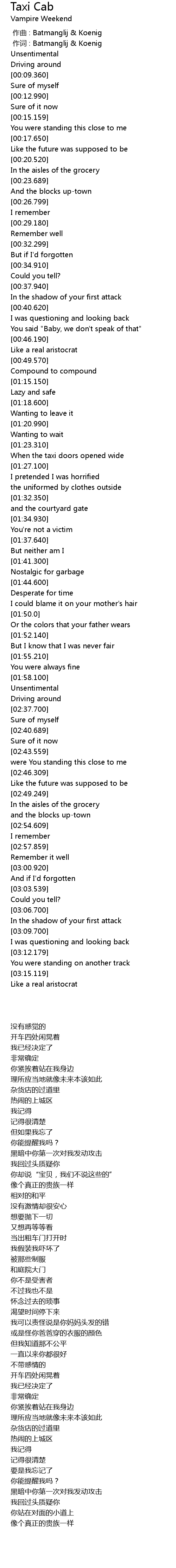 | [00:01.00] | 作词 : Batmanglij & Koenig |