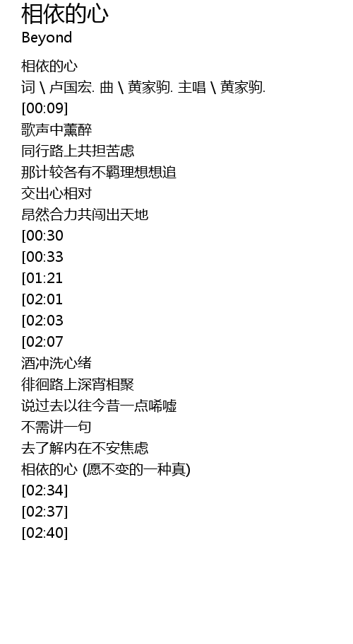 | [01:56][01:21][00:34] | 每刻相依的心 (愿不变的一种真) |