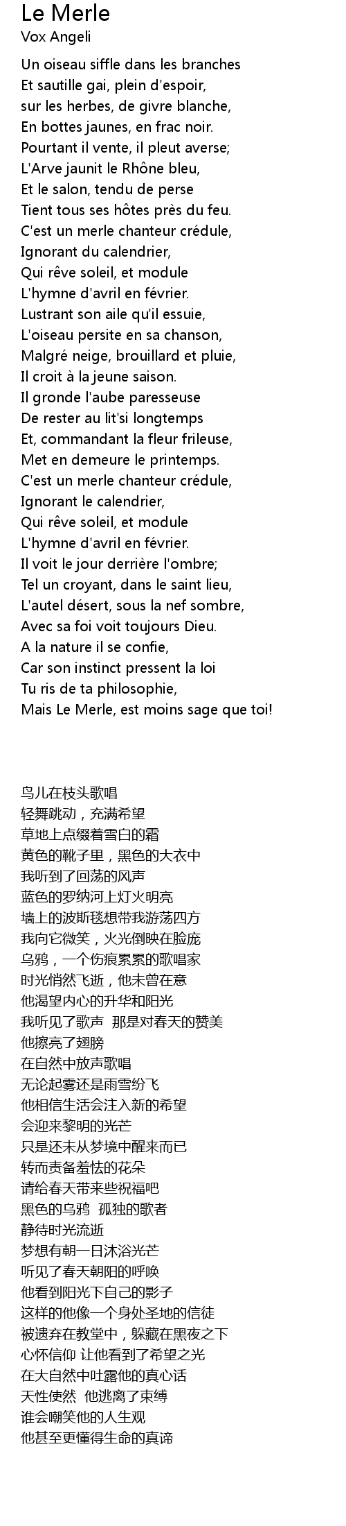 | [00:55] | Lustrant son aile qu' il essuie, |