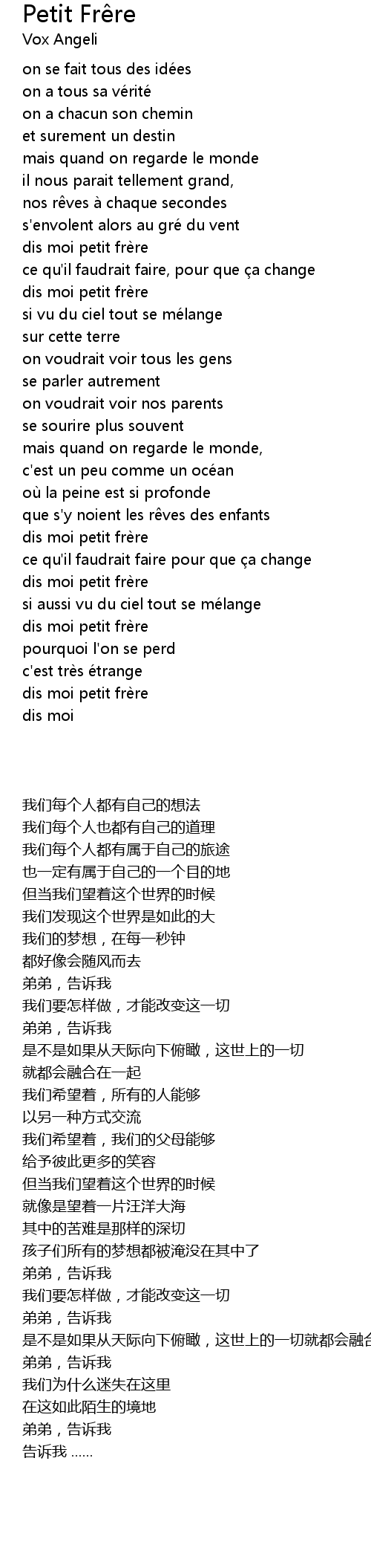 | [03:01.56] | dis moi petit fre re |