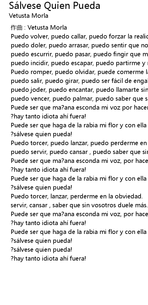 | [03:00.09] | ? sá lvese quien pueda! |