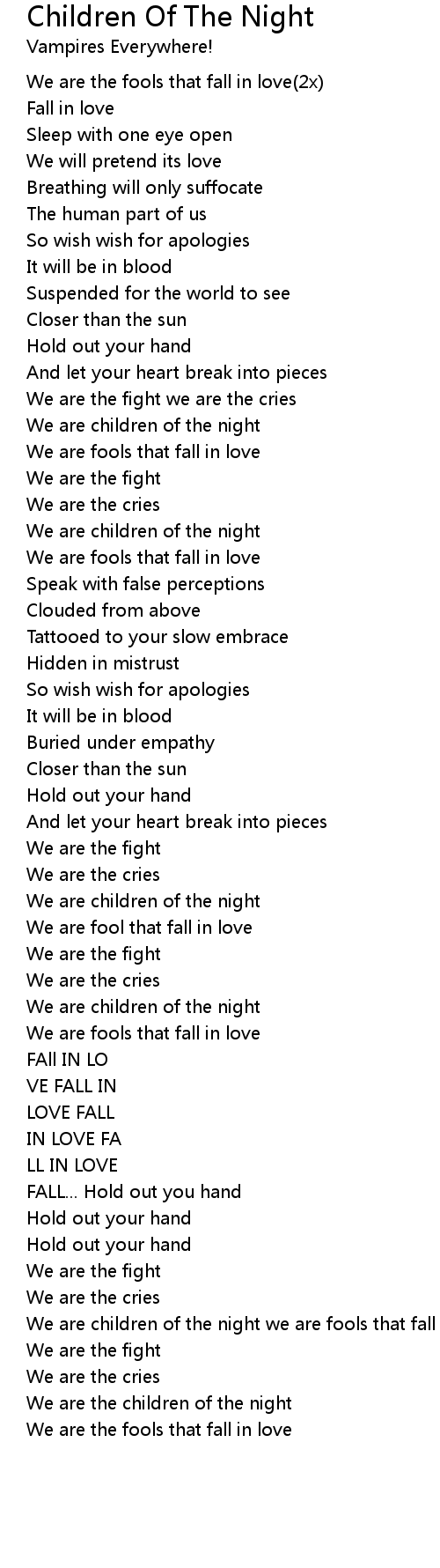 We are children of the night we are fools that fall in love |