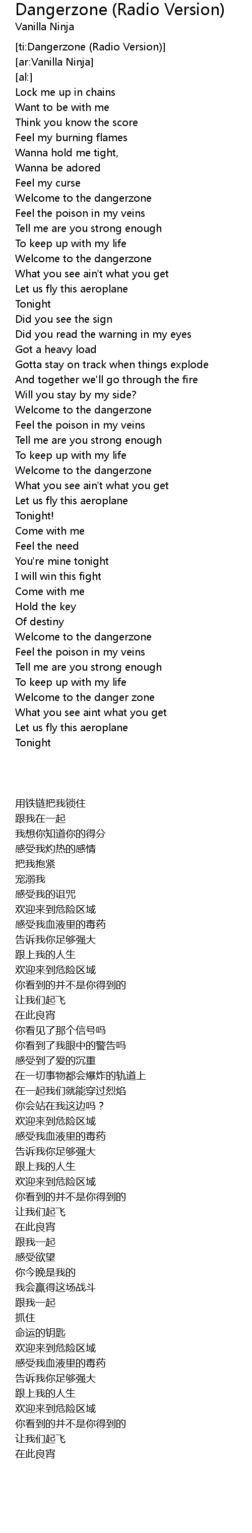 | [ti:Dangerzone (Radio Version)] | |