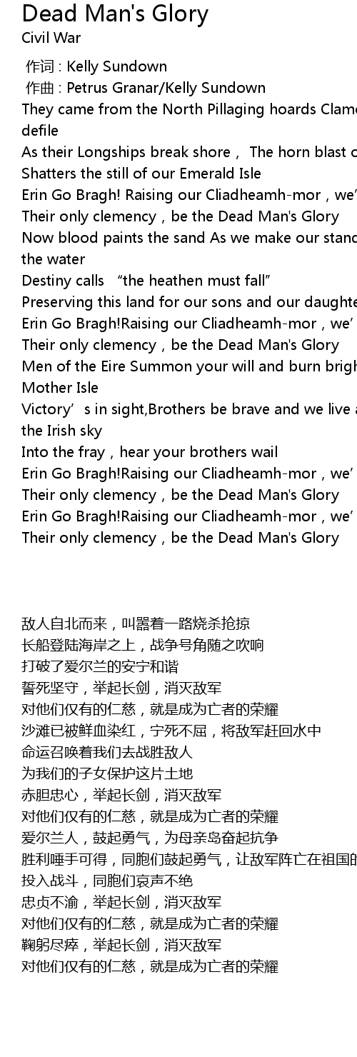 | [02:22.800] | Their only clemency, be the Dead Man' s Glory |