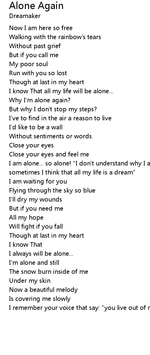 I am alone... so alone! "I don't understand why I am alone one more time... sometimes I think that all my life is a dream" |