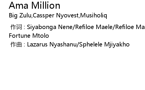 | [00:00.00-1] | zuò cí : Siyabonga Nene Refiloe Maele Refiloe Maele Phoolo Ncazelo Fortune Mtolo |
