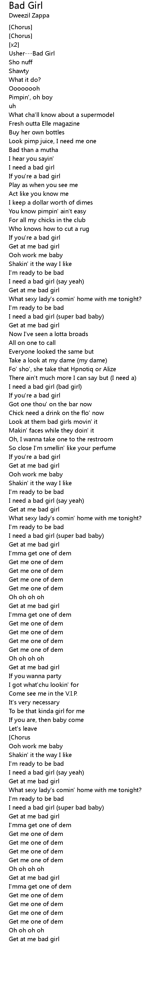 | [03:23.42] | I need a bad girl (say yeah) |