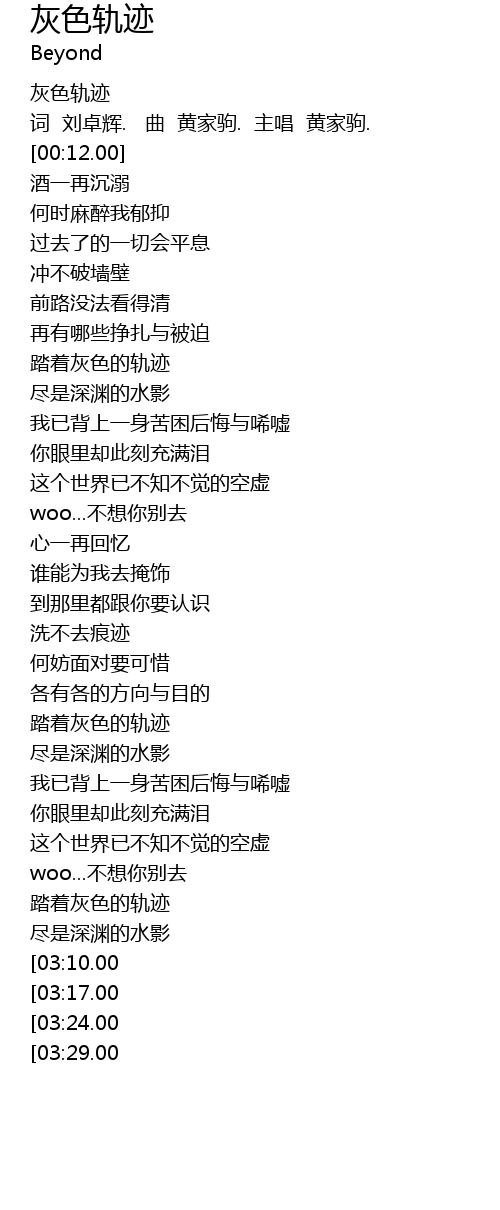 | [00:06.00] | 词 刘卓辉. 曲 黄家驹. 主唱 黄家驹. |