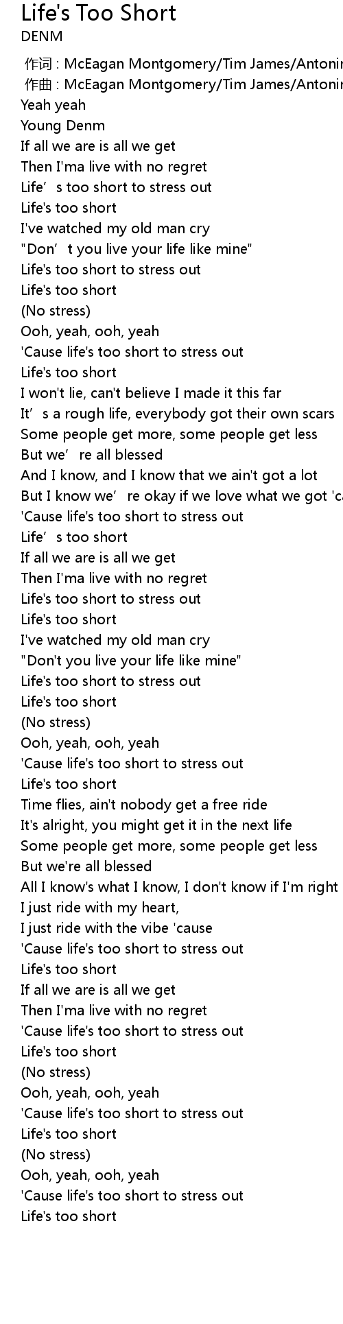 | [00:42.28] | ' Cause life' s too short to stress out |