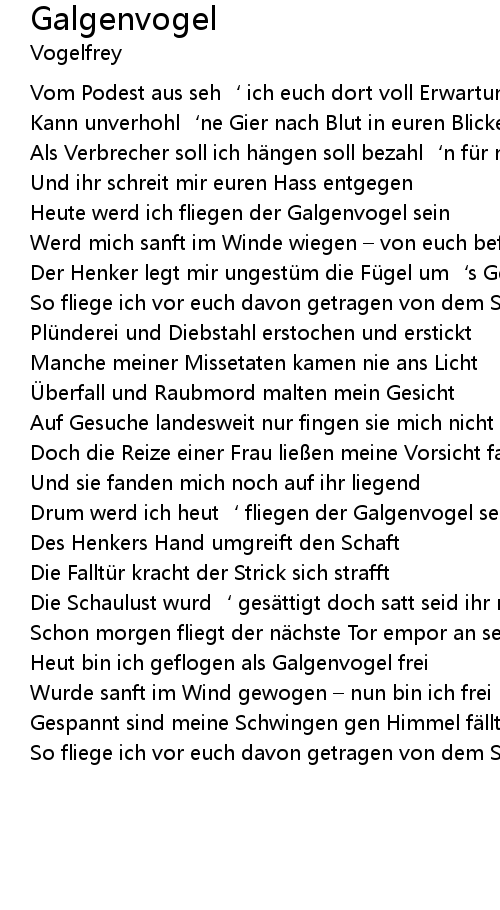 | Heut bin ich geflogen als Galgenvogel frei | |