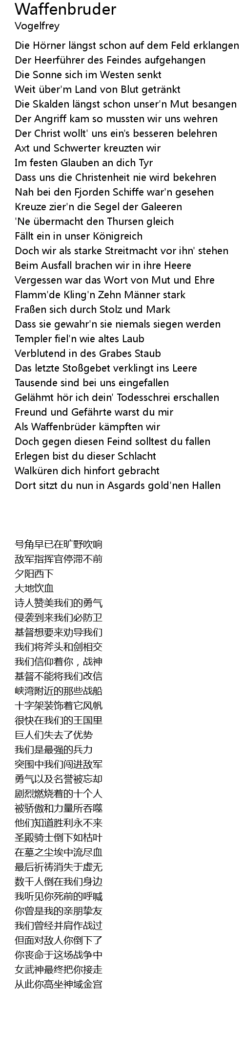 | [04:14.26] | Als Waffenbrü der k mpften wir |
