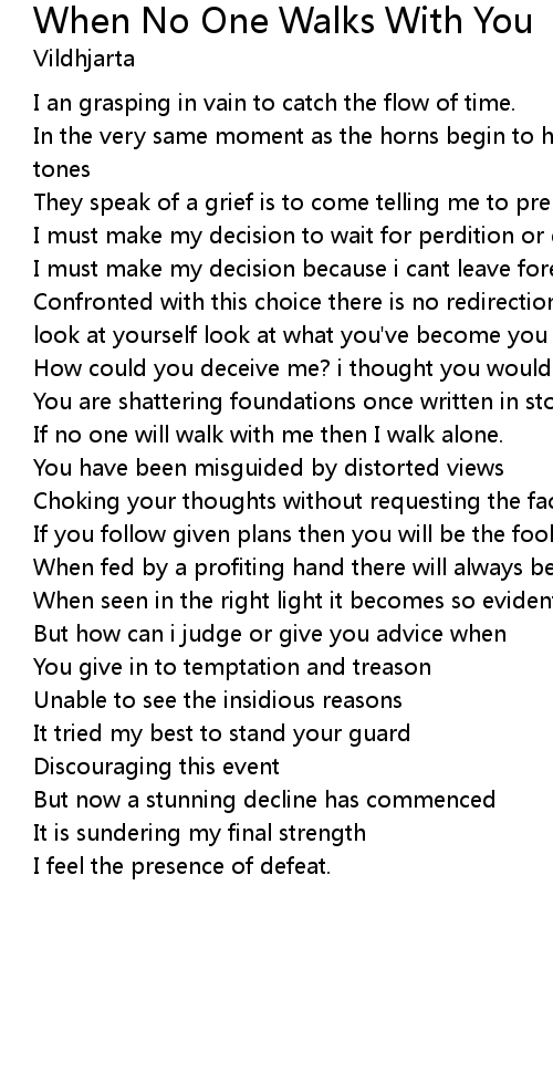 If no one will walk with me then I walk alone. |