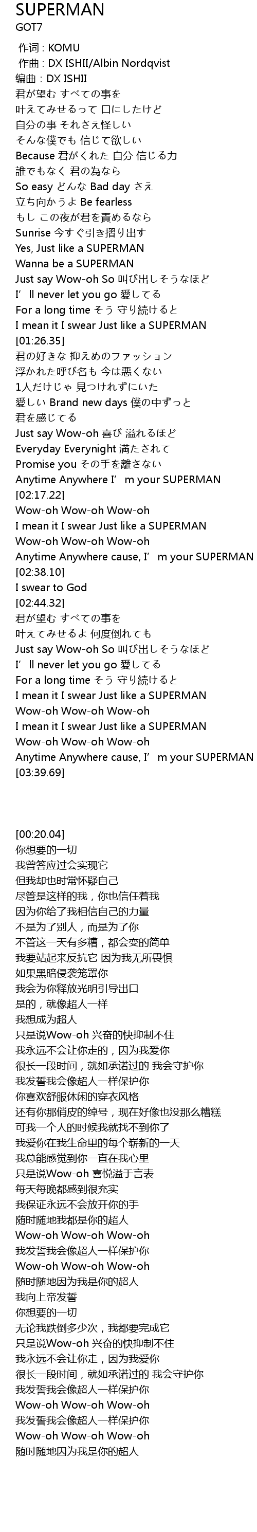 | [03:26.49] | I mean it I swear Just like a SUPERMAN |