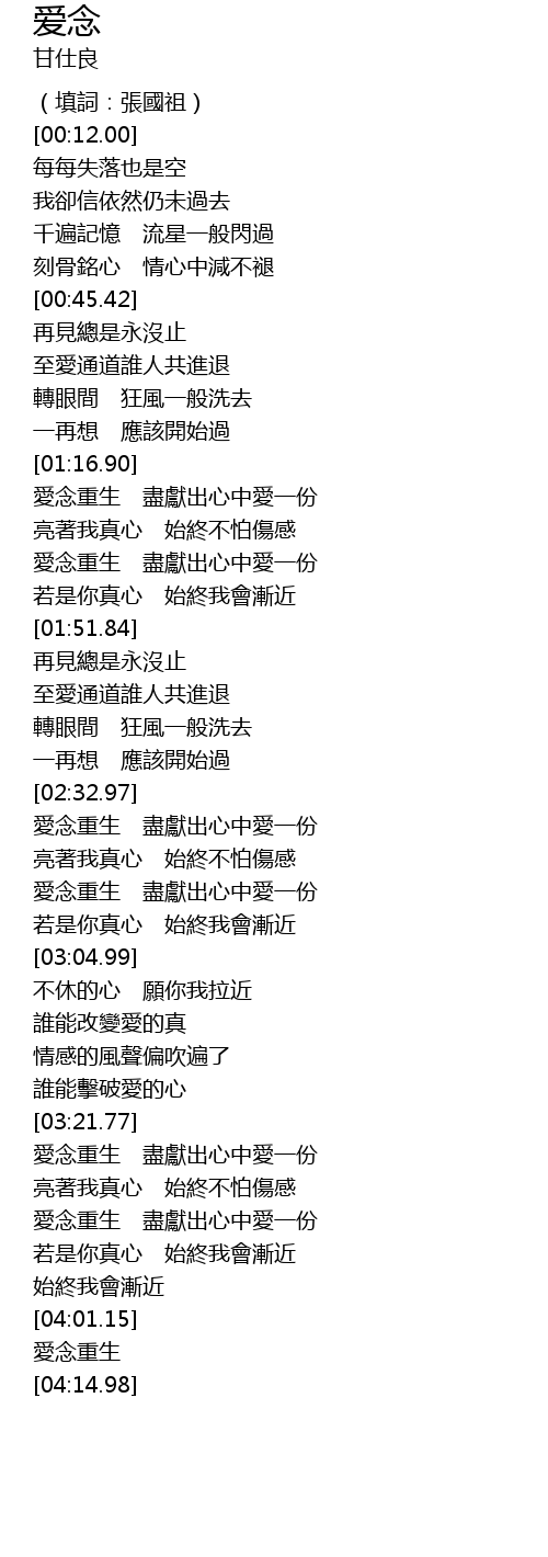 | [04:11.90] | 愛念重生 |