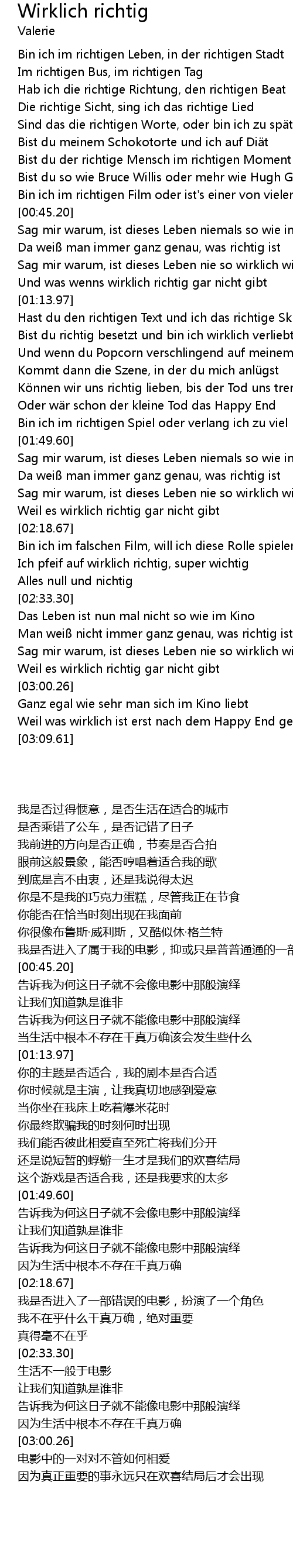 | [00:18.51] | Die richtige Sicht, sing ich das richtige Lied |