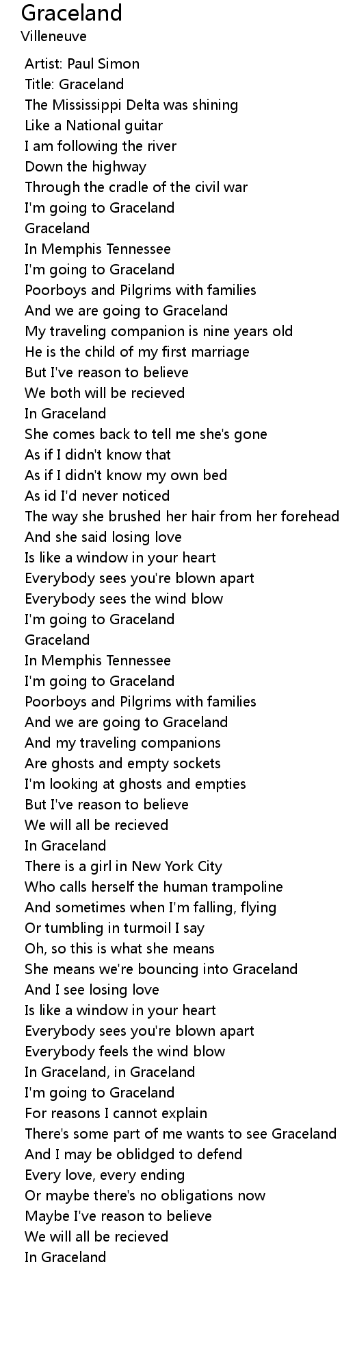 In Graceland, in Graceland |
