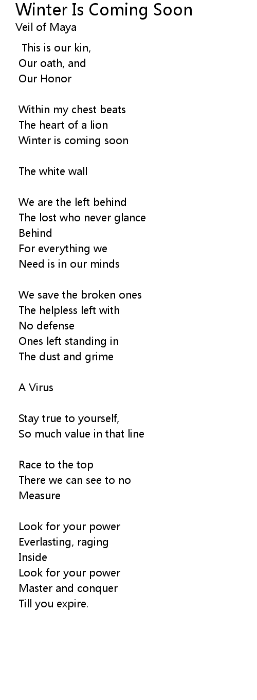 | Song | Winter Is Coming Soon |