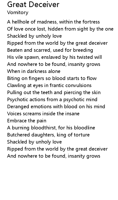 Ripped from the world by the great deceiver |
