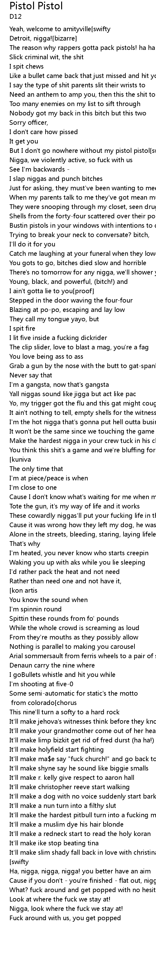 The reason why rappers gotta pack pistols! ha ha ha ha![chorus - eminem] |
